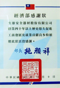 民國101年11月9日榮獲經濟部頒發創業四十年以上之公司感謝狀,表達公司對於促進工商發展及就業貢獻良多的肯定與感謝。