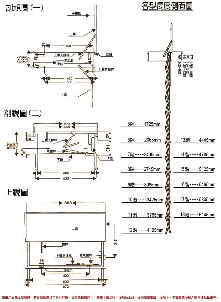 功能與規格皆同上述雙向型,唯只能由下往上操作,適用於頂樓。