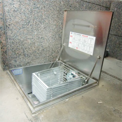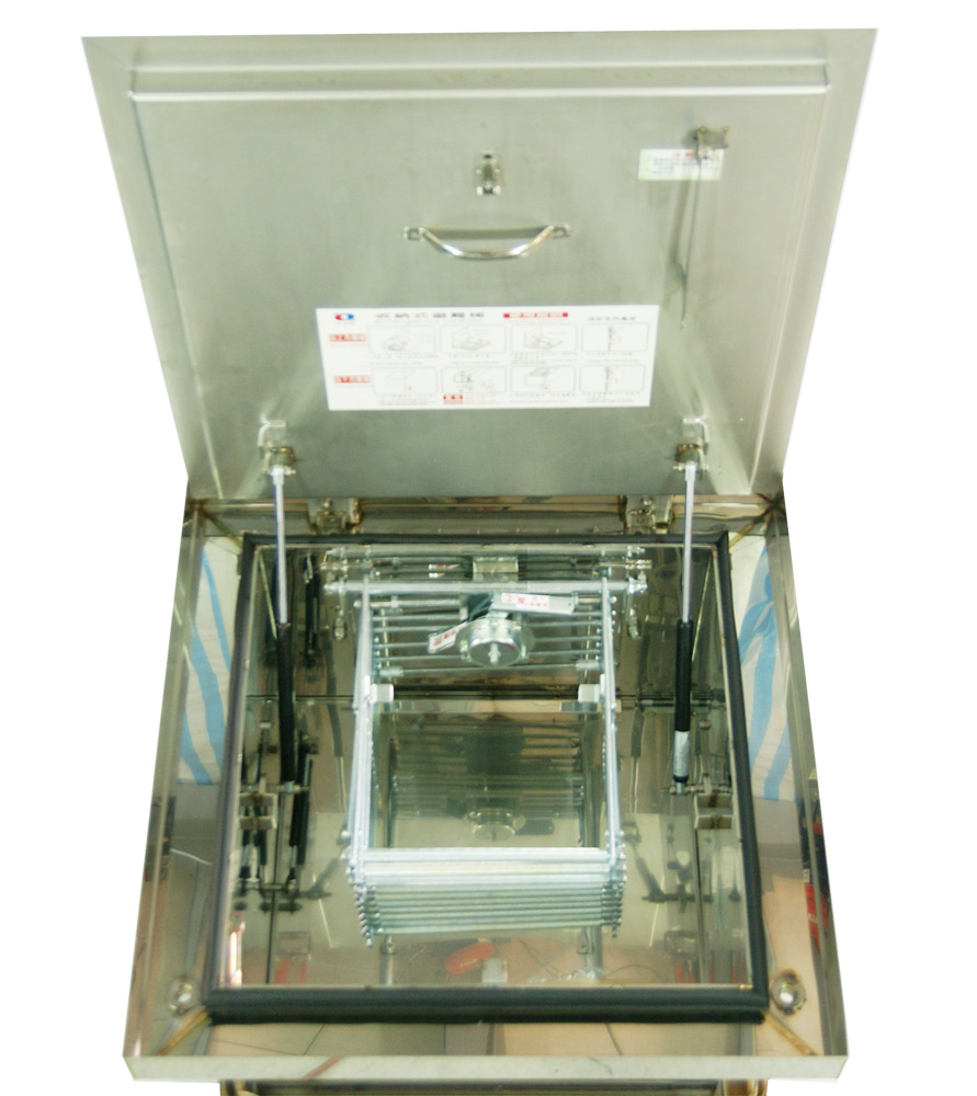 上蓋可舖設20mm之大理石或磁磚(若需求大於20mm亦可訂製),並且具排水槽、防水膠條。 尺寸:箱體上部外徑796x796mm,內徑600x600mm。 材質:箱體上蓋為SUS304材質(t=3.0mm),箱體為SUS304材質(t=1.5mm)。 配件:上蓋具有兩支油壓桿,幫助開蓋。 動作:上蓋開啟時,上、下蓋能同時開啟,並且上蓋開啟可達90度之開啟角度。 相關規格細節請來電洽詢。